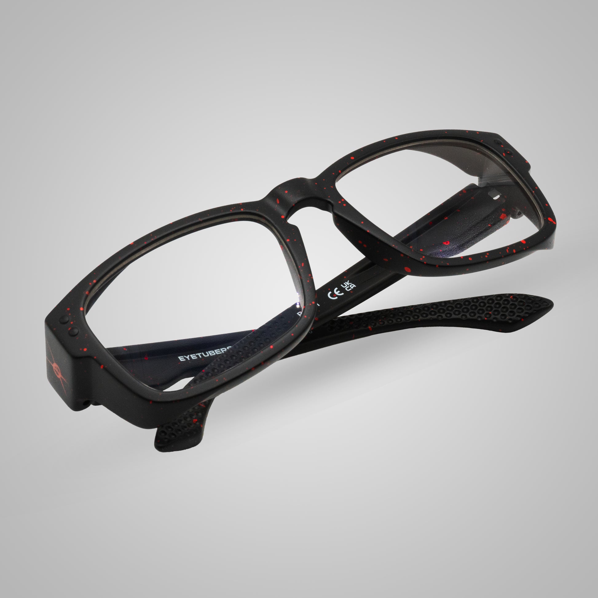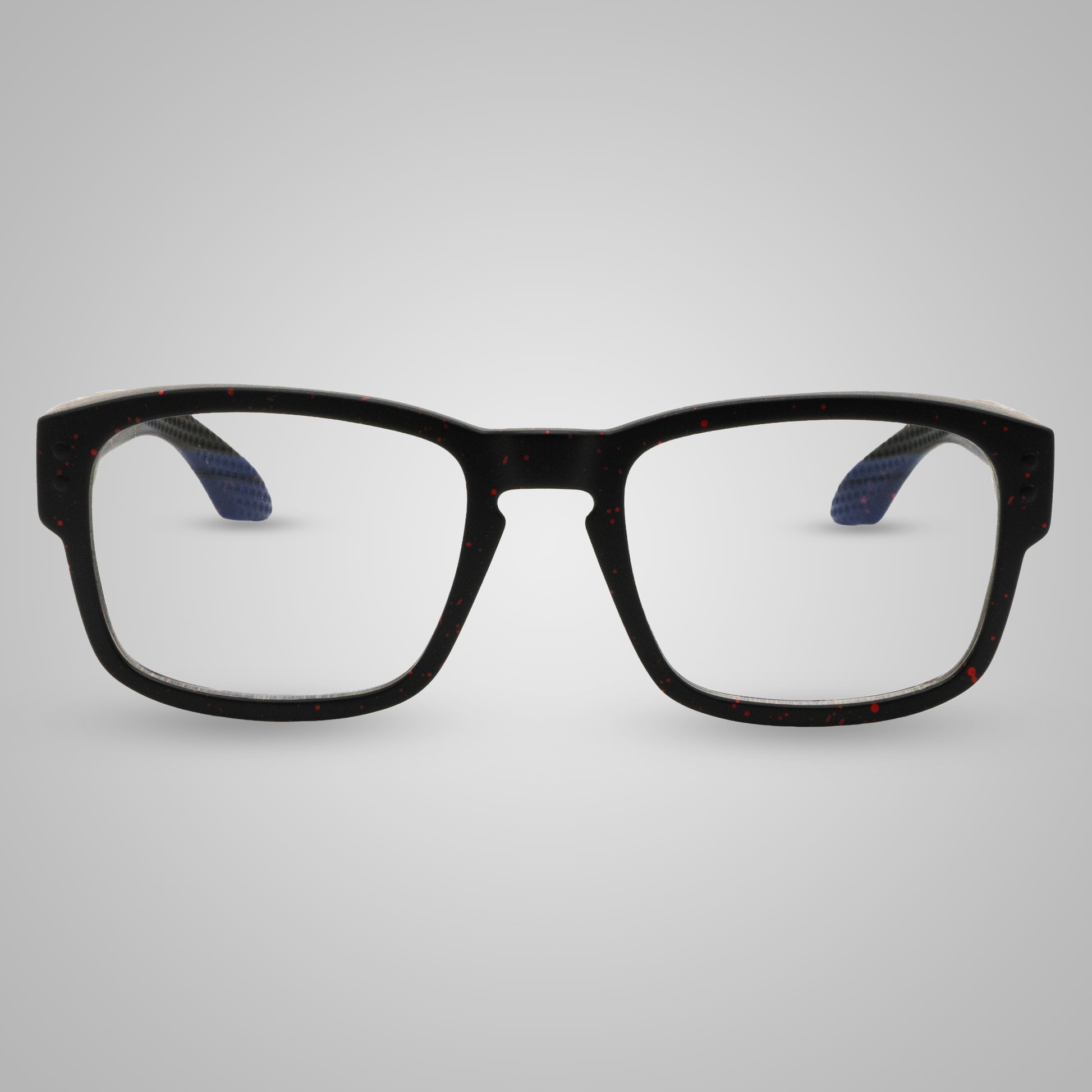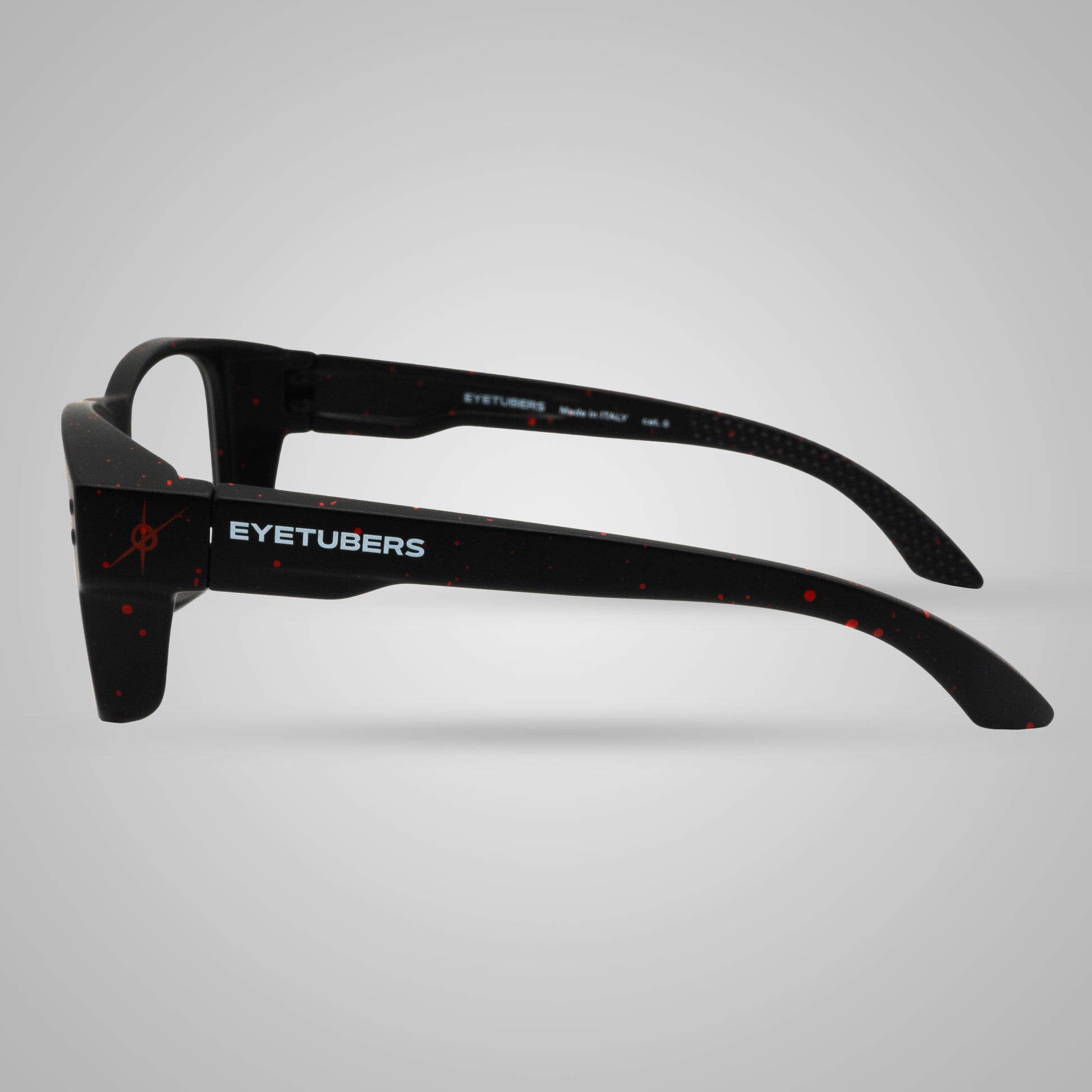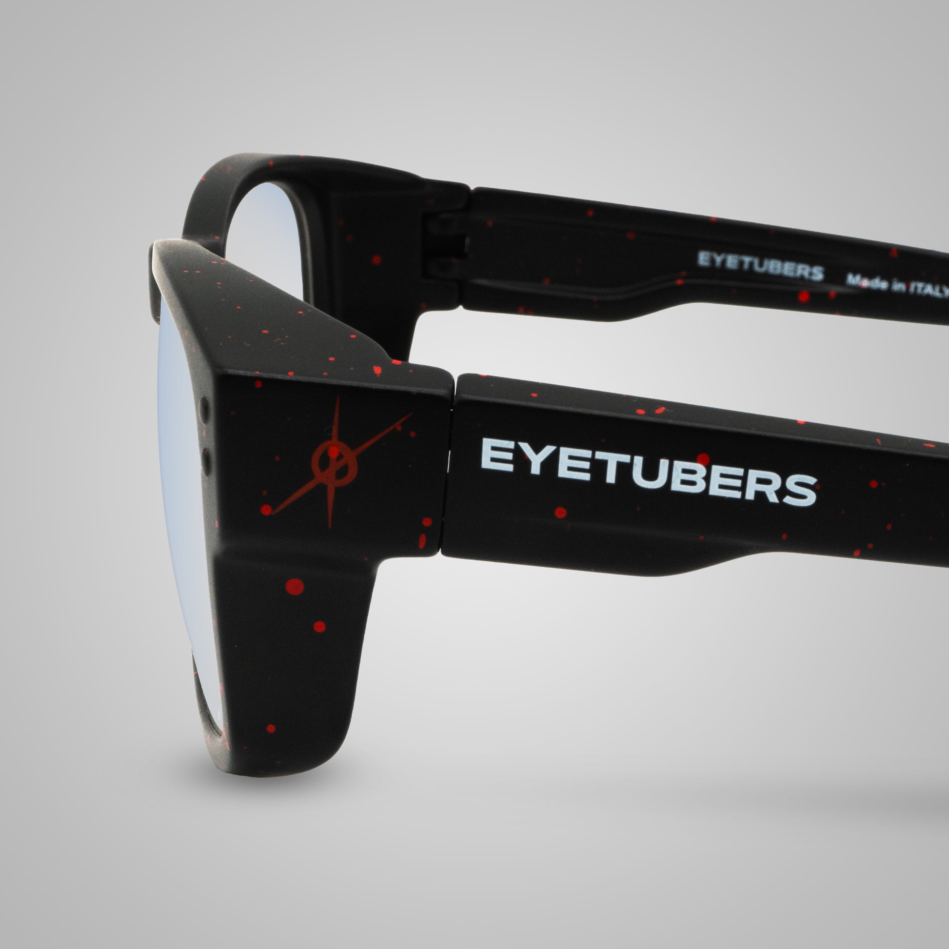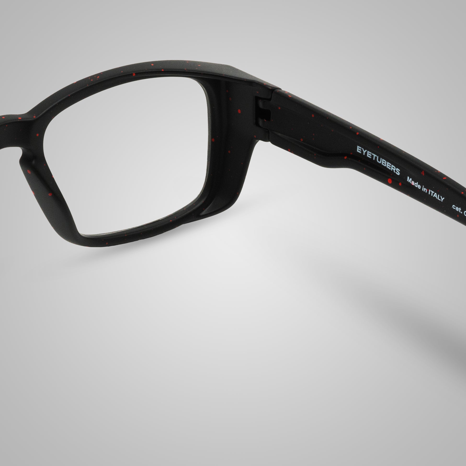 Ogni montatura è realizzata a mano con una tecnica artigianale di dripping rosso su base nera, ottenuta applicando manualmente micro-gocce di colore. Questo rende ogni pezzo un’opera unica, leggermente diversa dall’altro, con sfumature e distribuzioni del pattern irripetibili. Proprio per questo gli occhiali potrebbero non coincidere perfettamente con le foto presenti online: l’esclusività è parte della loro personalità.